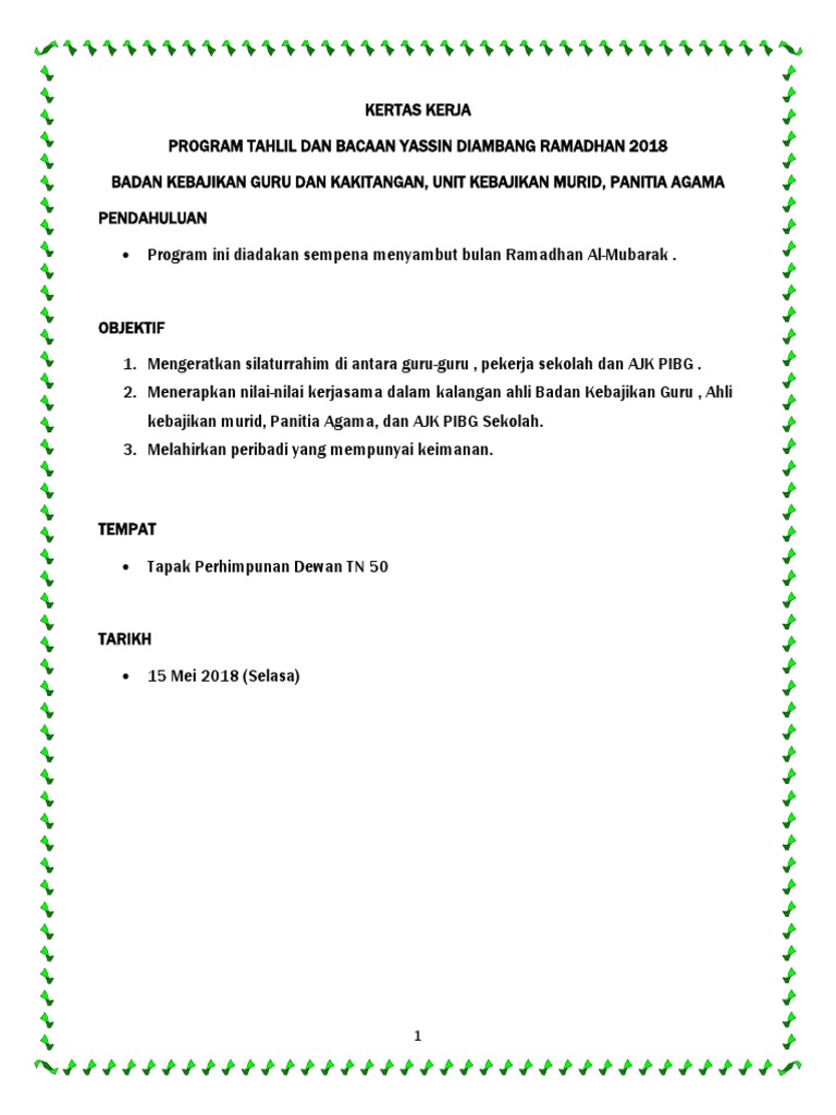 Berikut merupakan koleksi kertas kerja dan buku program ihya ramadhan yang boleh dilaksanakan di sekolah. Satu bulan yang dalam bulan. Check more flip ebooks related to KERTAS KERJA INFAK RAMADHAN SUMBANGAN HARI RAYA 2020 of.